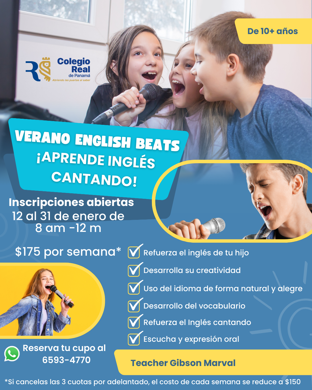 1 SEMANA $175 2 SEMANAS $280